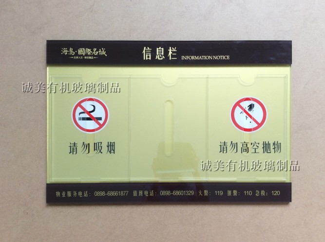 深圳寶安沙井誠美有機玻璃專業加工房地產壓克力信息欄 小區有機玻璃告示牌 亞克力公告欄 PMMA通知牌 帶A4插紙盒廣告牌 監督牌等,還可按客戶要求訂制加工,歡迎惠顧。