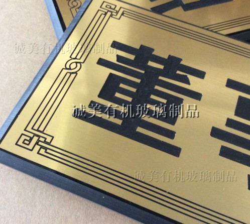 誠美有機玻璃利用雙色板防水防曬的特性,專業加工科室牌 、門牌 、機械面板等,可按客戶需要的不同顏色 樣式 款式加要訂制,滿足客戶的不同需求。 雙色板是以ABS為基材一種新型柔性裝飾、裝潢材料。由于雙色板具有ABS本身的抗沖擊性、耐熱性和耐低溫性,同時,也具備易於加工、成品尺寸穩定等特性,近年來更是倍受建筑裝潢裝飾、展覽展示、廣告制作、標識制作等行業廣泛應用。 誠美有機玻璃歡迎您的惠顧~